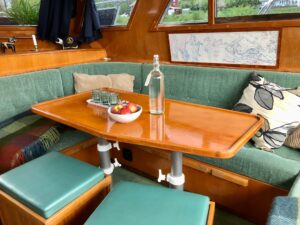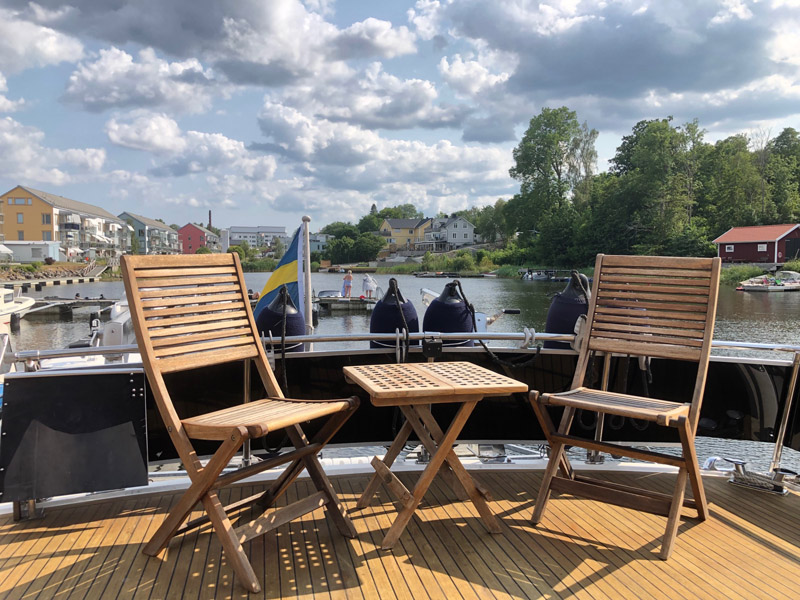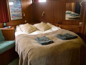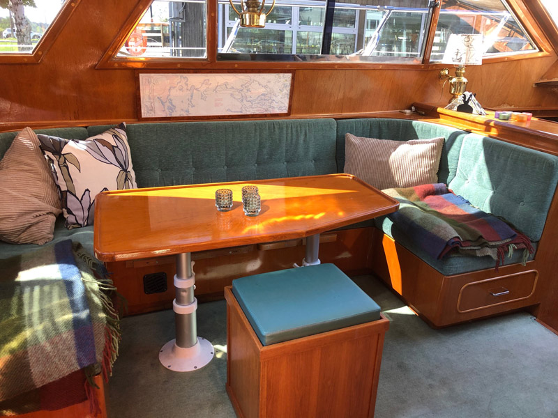 Den trivsamma och fullt utrustade båten Elvira ligger förtöjd vid brygga ca 150 meter från Pensionat Kanalvillan. Flybridge, fullt utrustat kök, 2 toaletter varav en med dusch, mastercabin samt sovhytt med mindre dubbelsäng. Plats för 4 personer.