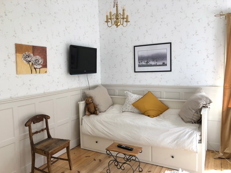 Kanalsidan är Pensionat Kanalvillans dubbelrum med plats för fyra personer där bäddsoffan kan bäddas upp till en säng i queensize om man önskar. Kanalsidan delar terrass med rummet bredvid som vi kallar Solsidan.
